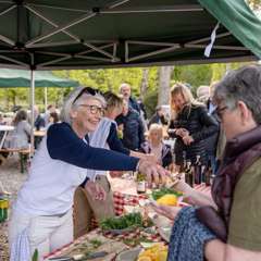 Der kan købes lokal øl, vand og vin, og kl. 11.00, 13.00 og 14.00 er der rundvisning i aspargesmarken.